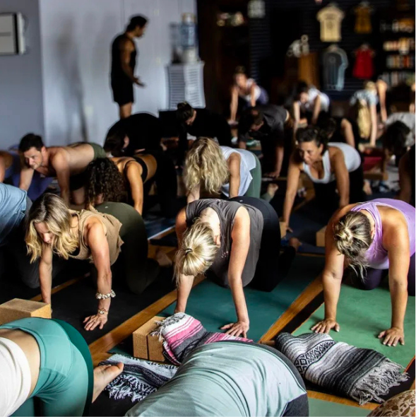 At Satsang, we practice together rather than separating students into rigid levels. Newer students and longtime practitioners often share the same room, learning through guidance from the teacher and through the collective rhythm of practice itself.