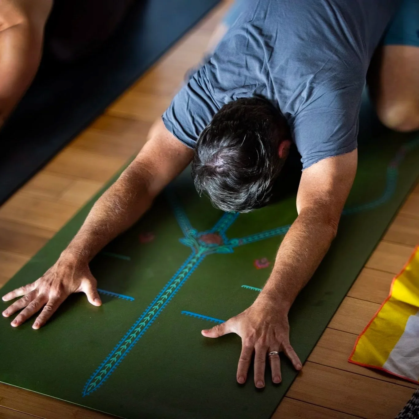Jeffrey leads the immersion in the same way he teaches class: direct, thoughtful, musical, devoted, and human. The live site describes him as an international yoga and meditation teacher since 2002 and founder of Satsang since 2005, known for an in-depth and transformative teaching style that blends humor, musicality, and earnestness.